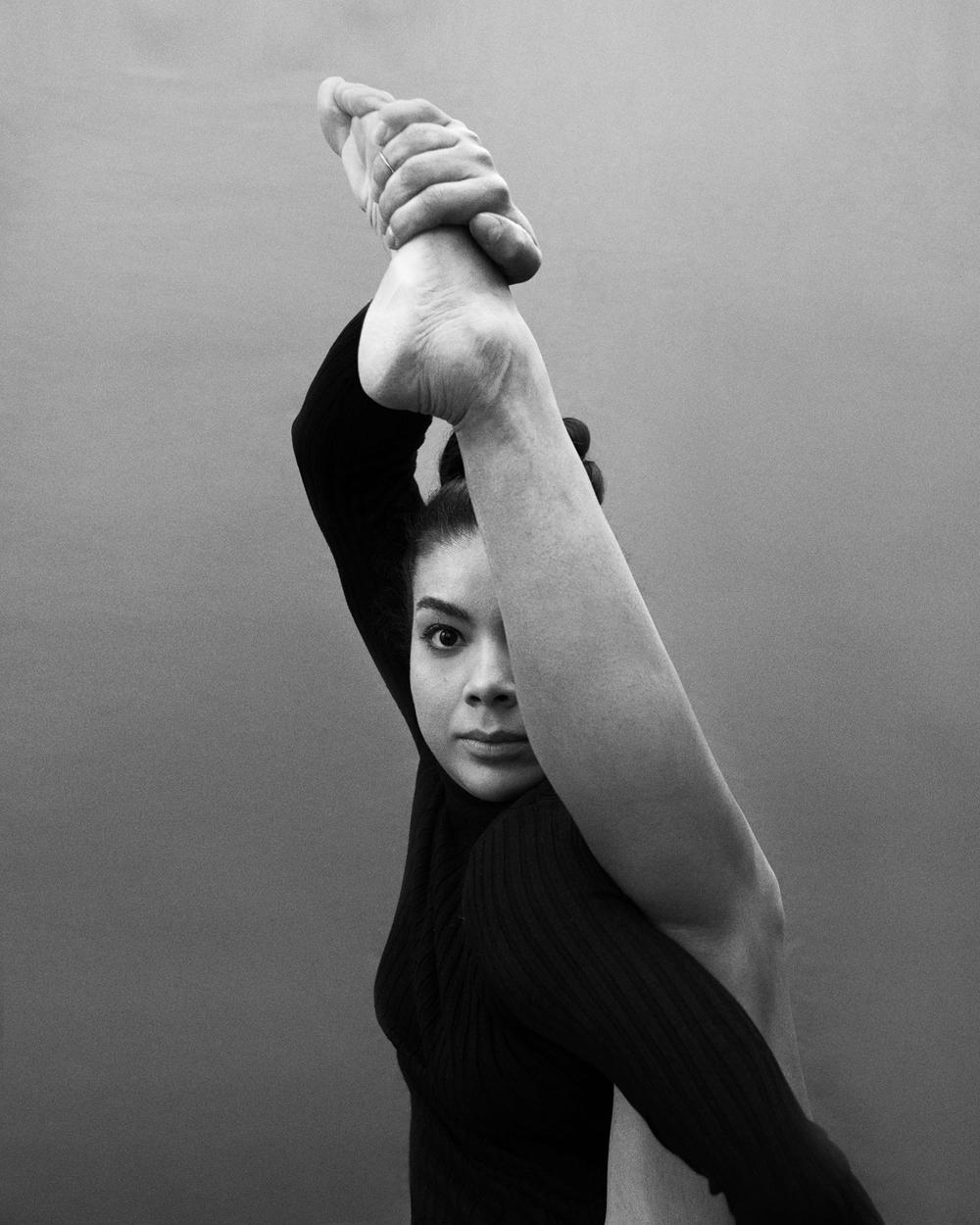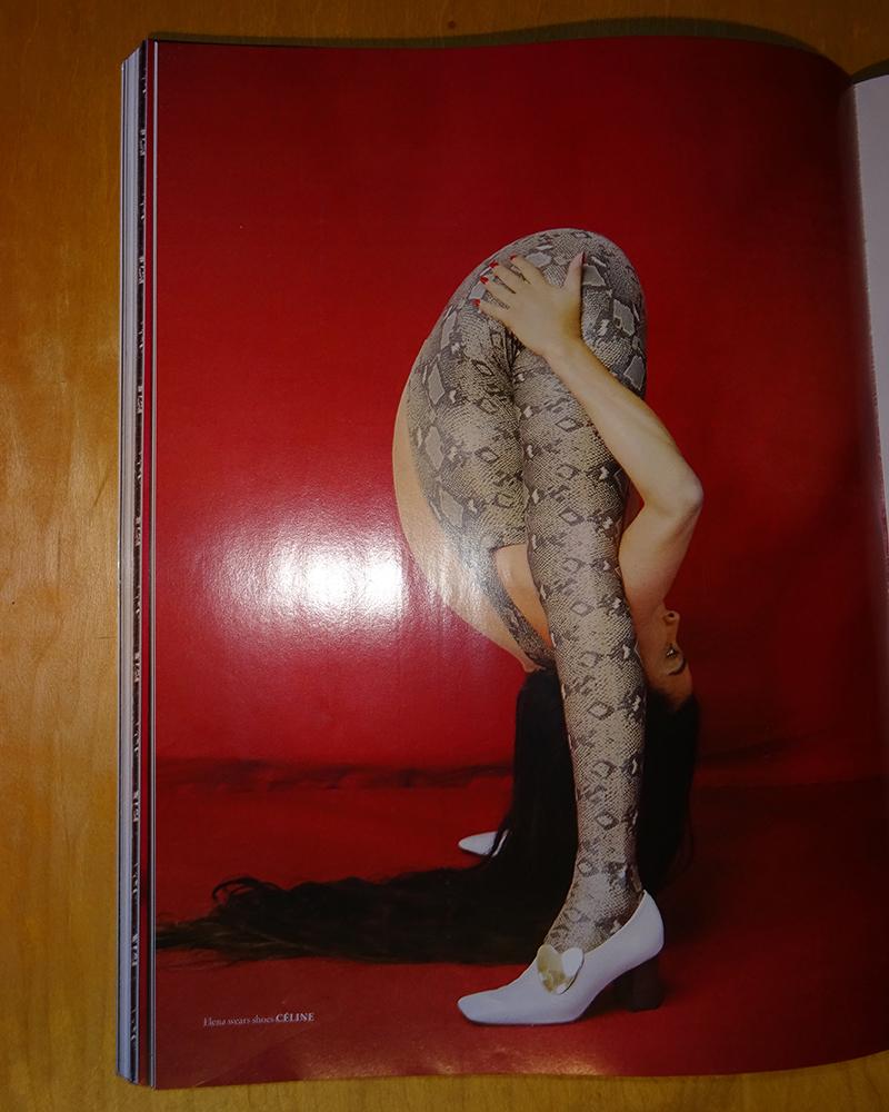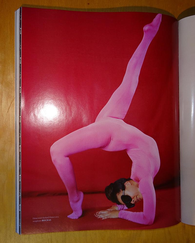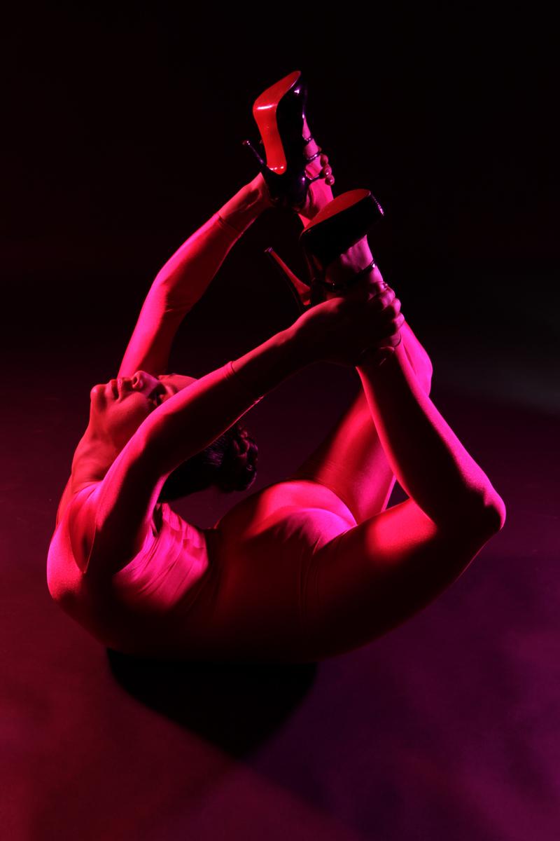 Elena Ramos is a contortionist, a photographer and a stylist at the same time. She is a live performance choreographer, image model, stylist and photographer of artists and houses. Her couture body sculpture concept, ElenaFashionFlexSculpture, choreographs body positions according to the codes of sculpture and haute couture. In particular, she creates self-portraits that combine her contortion postures with luxury products or urban spaces. She is also an editor of cultural articles for Faust magazine.