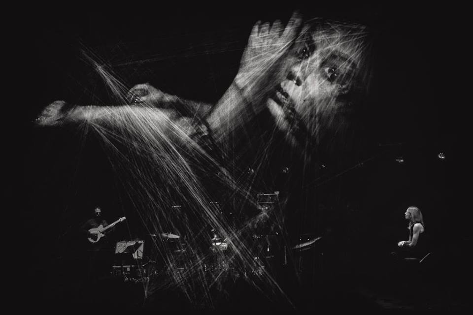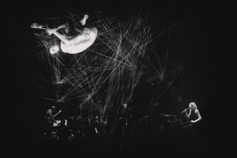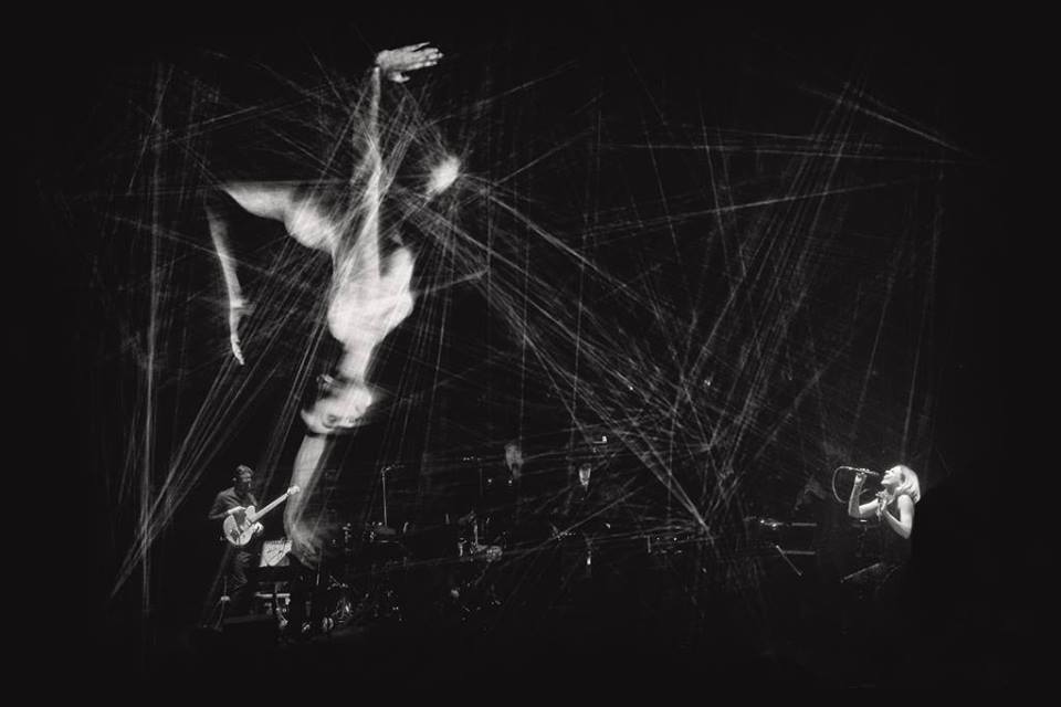 Contorsion, texte et capillotraction, une créature araignée raconte et tisse une toile en cordes jusqu’à tourner dans un espace.