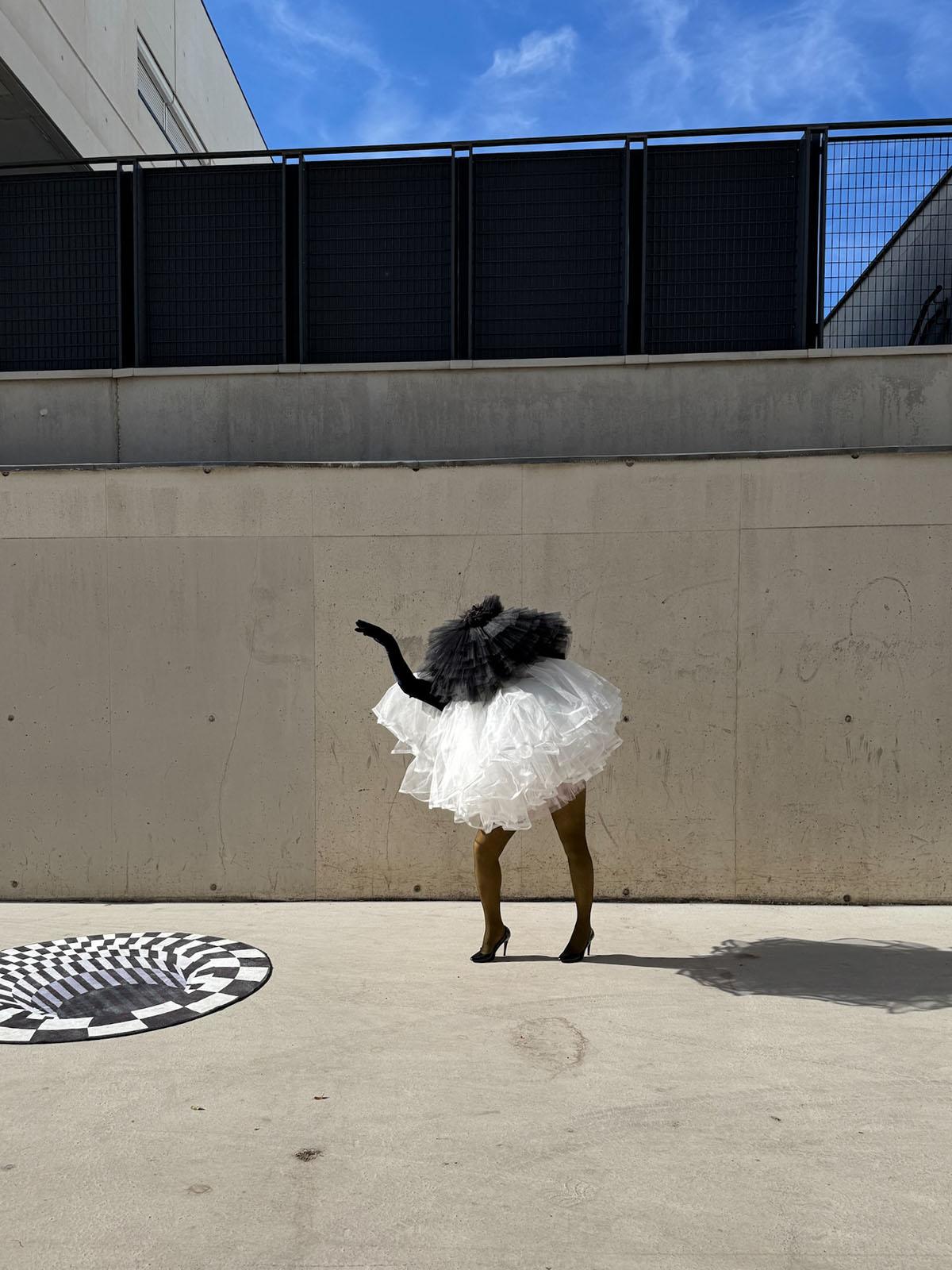 His artistic proposal is a personal perception. It is also an overtaking towards other points of view than those of the classic codes of the burlesque scene, essentially based on an expression of excess that did not correspond to it. Autonomous, detached from entertainment, radical and atypical, Elena Ramos is a free electron who works with an approach comparable to that of painting, in independence and openness. It brings as much investment and consideration to performance as it does to design with particular care given to the entire piece, poetry always at the heart of its development. There is a recurring preference for contrasting universes, graphic, geometric, black and white, or otherwise achromic, refined, matte, minimalist, and contemplative.