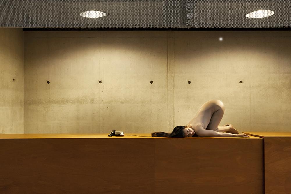 Intégrer la haute couture à l’excellence de l’habilité du corps est une évidence. Elena Ramos travaille le positionnement fixe, le sculptural, le mouvement du dessin en volume contenu à l’intérieur de l’immobilité. La photographie est le medium qui emprunte la même logique de figer le geste. La posture contorsionniste installée dans l’image trouve en la photographie et l’autoportraitisme le socle idéal.